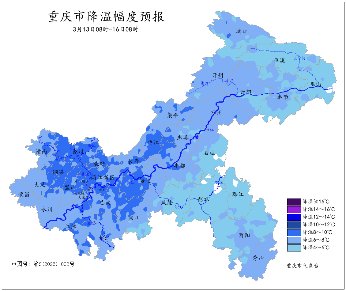 受冷空气和高原槽共同影响,预计14—15日,我市有一次降温降雨天气过程,日平均气温中西部和东北部地区将下降7~10℃,其余地区4~8℃;中东部部分地区大雨(25~45毫米),最大小时雨量15~30毫米,局地伴有雷电、短时强降水、小冰雹等强对流天气。冷空气影响时山口河谷地区有6~8级阵风。