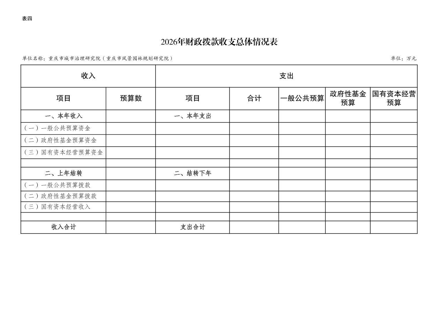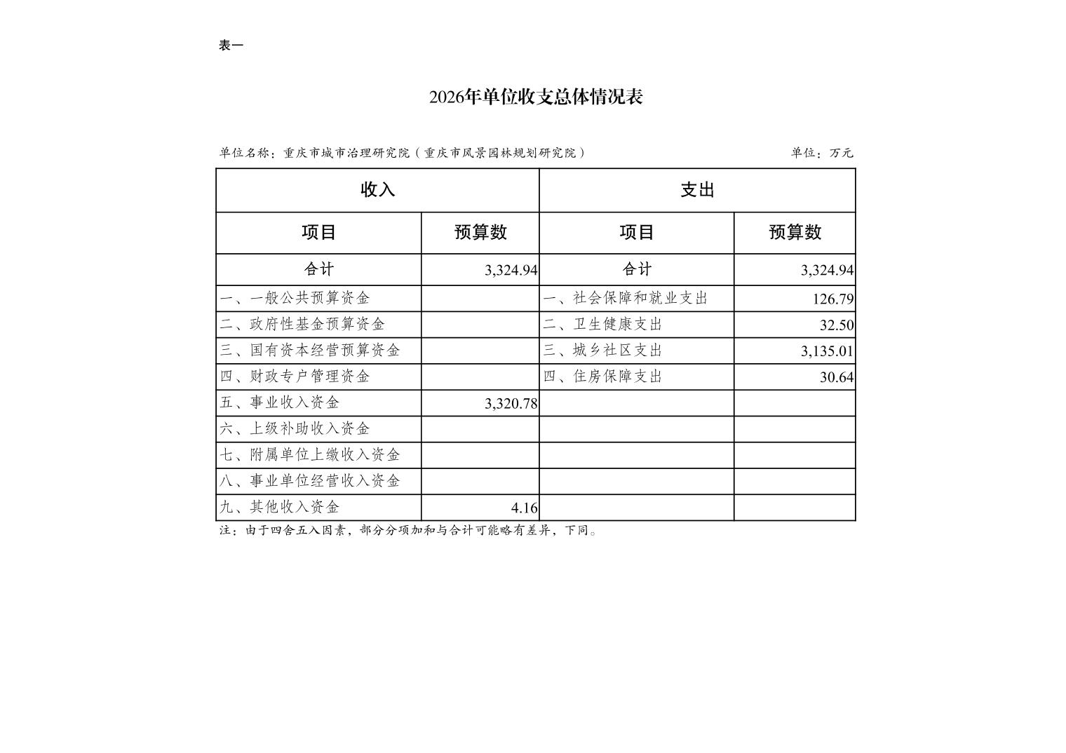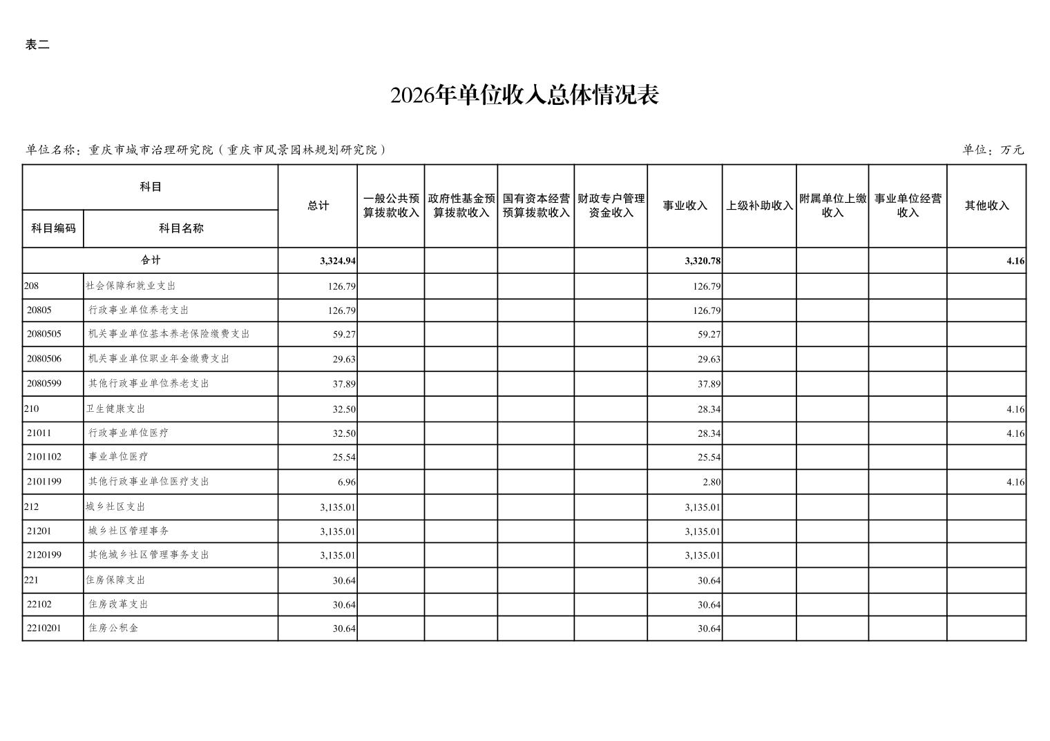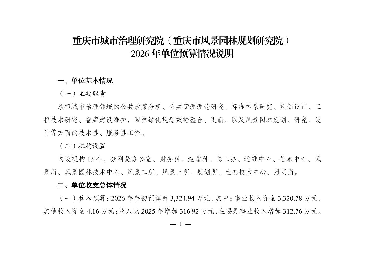重庆市城市治理研究院(重庆市风景园林规划研究院)2026年单位预算情况说明