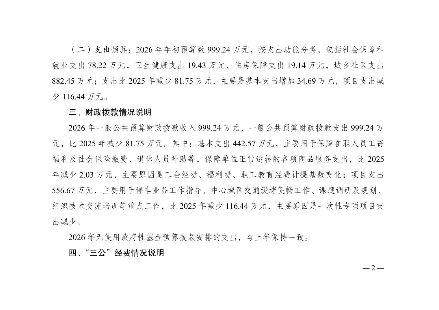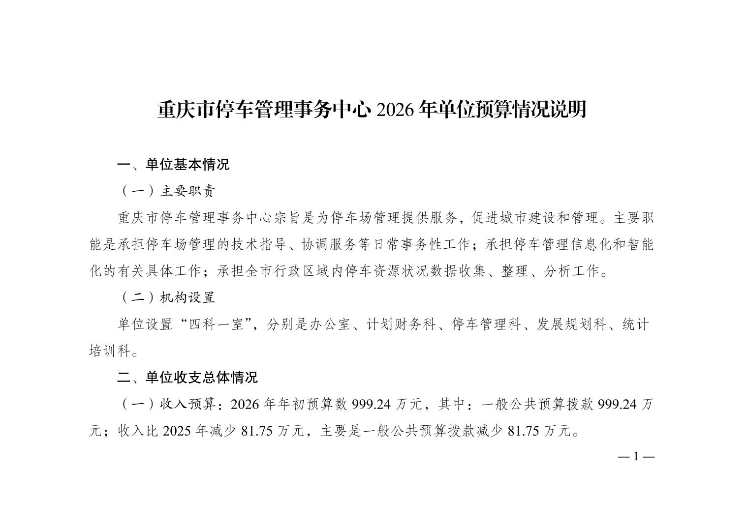 重庆市停车管理事务中心2026年单位预算情况说明