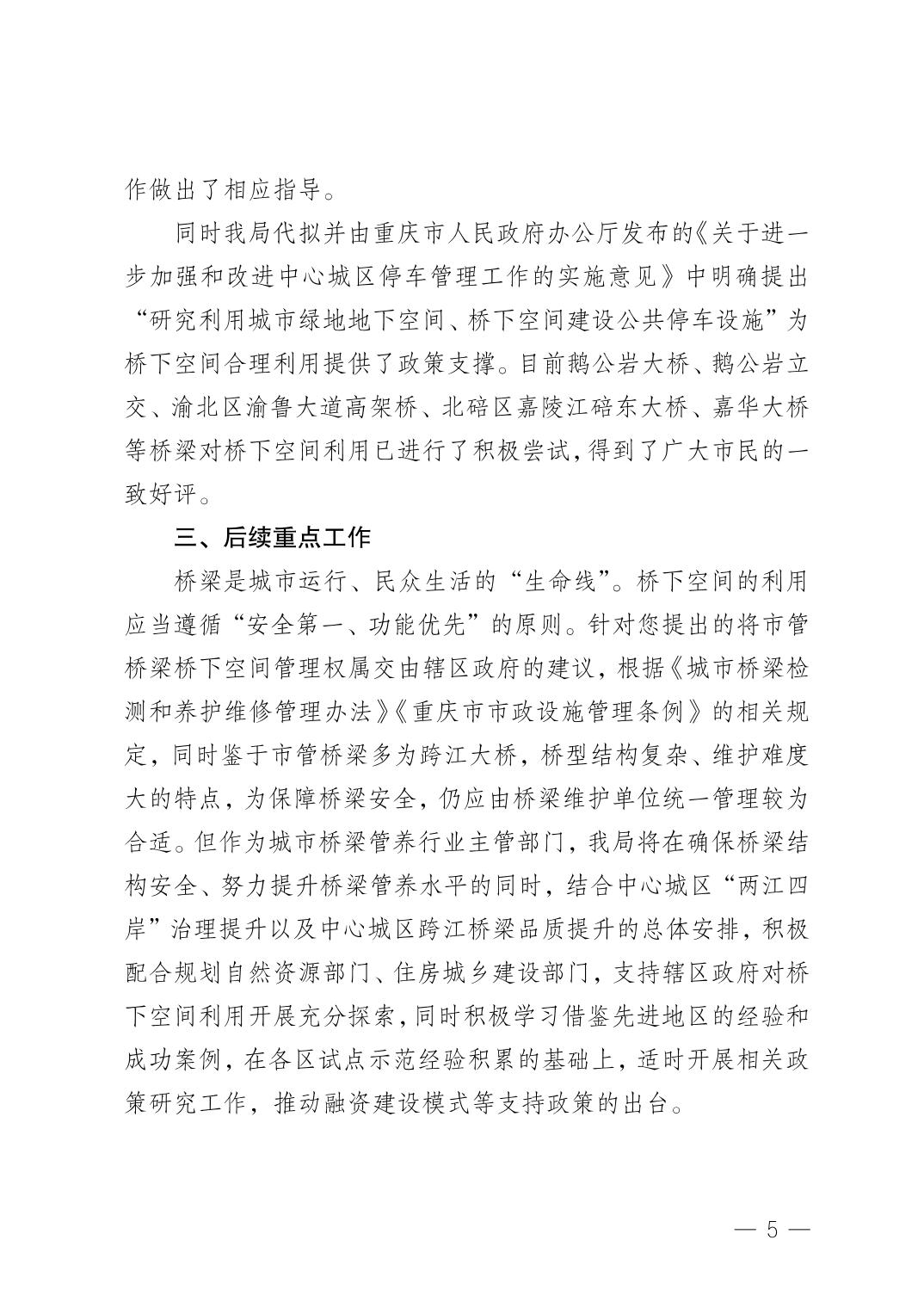 重庆市城市管理局关于市政协五届五次会议第0197号提案的复函