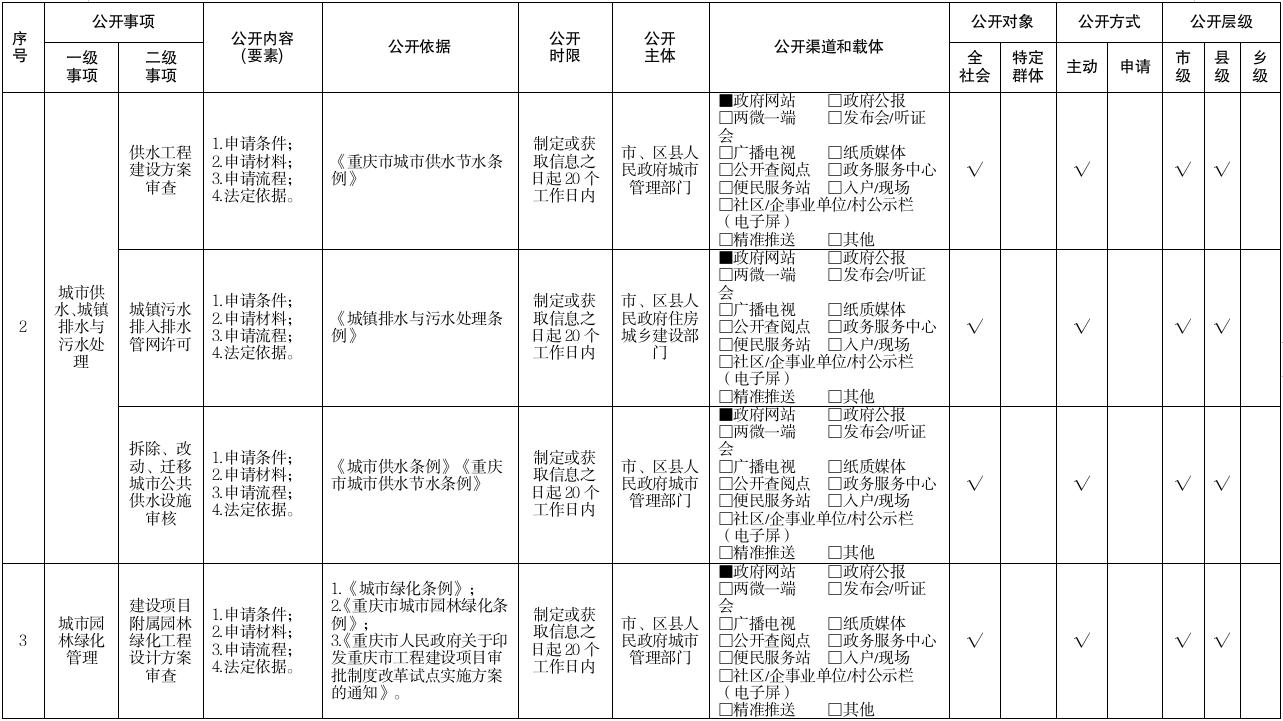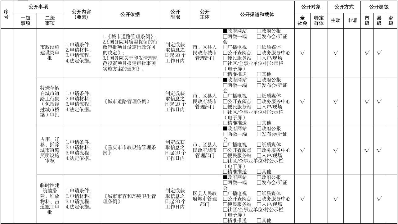 重庆市市政服务领域政务公开标准目录(2025年版)