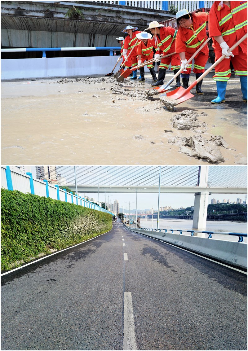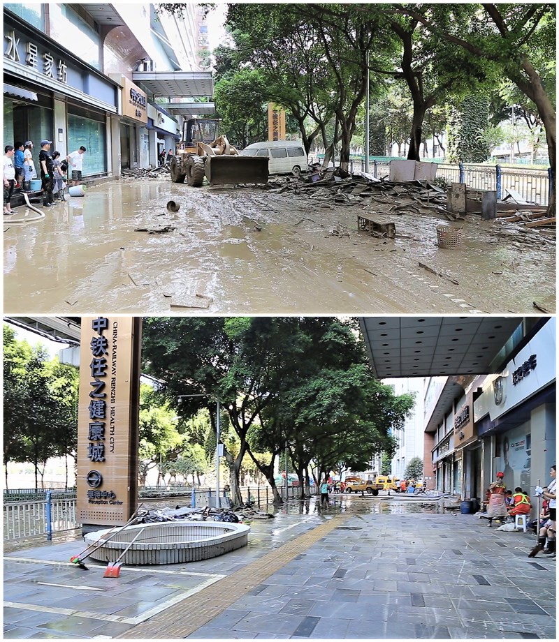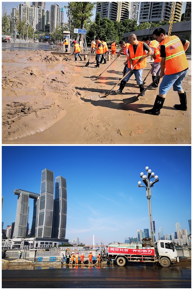 不眠不休,与淤泥和垃圾奋战。满目狼藉的道路恢复了“容貌”,城市渐渐恢复了整洁与宁静,一切生活美好如初。