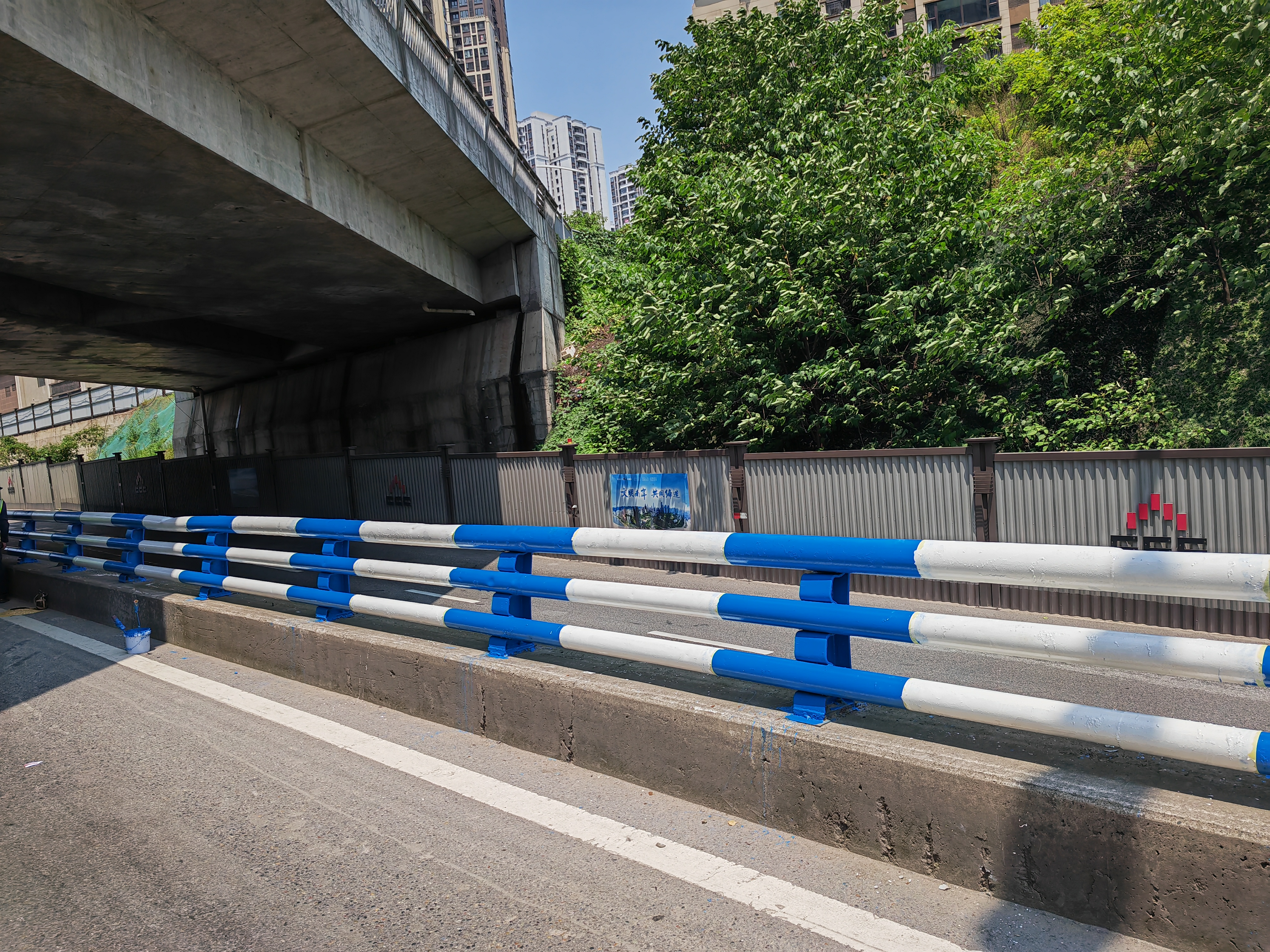 目前已完成黄桷湾立交跨线桥(慈母山隧道往朝天门大桥方向)右侧护栏涂装约670米。下一步,市设施中心维护五处将继续加大力度做好设施涂装及安全管理工作,进一步提升设施整体美观性。