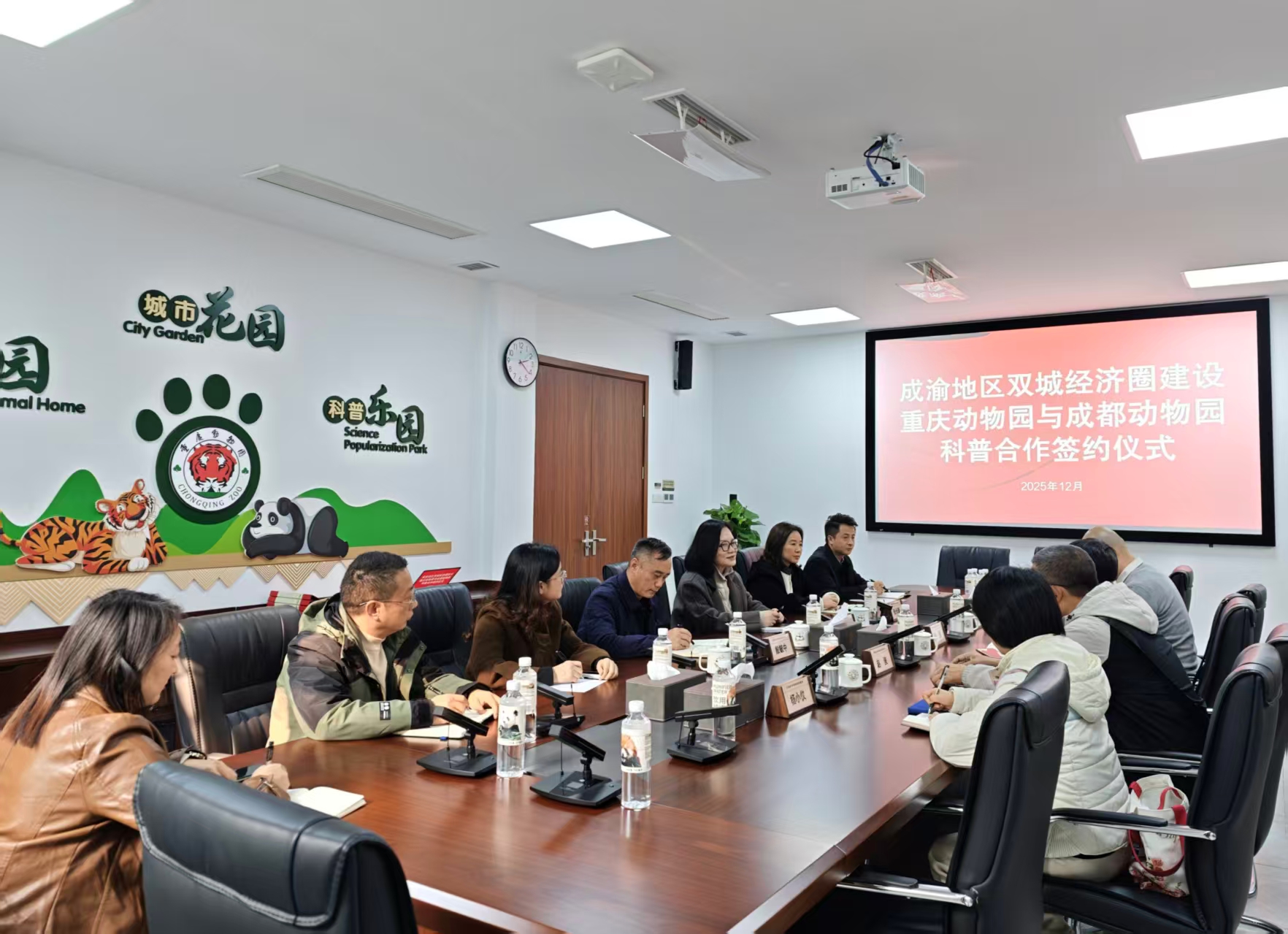 12月18日,市动物园管理处与成都动物园签署科普合作协议,达成战略合作。双方立足共同理念,展望未来合作,一致赞同将成渝地区双城经济圈国家战略转化为动物保育与公众教育的生动实践。两园希望能以此次签约为新起点,在资源、品牌、市场、人才等多维度开展更广泛、更深度的合作,充分发挥双方在科普教育特色活动上的优势,形成“1+1>2”的聚合效应,为成渝地区提供更高品质的科普服务,合力打造西部动物科普教育高地。