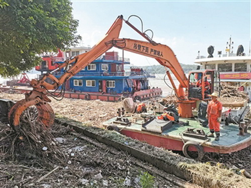 汛期打捞水上垃圾上万吨