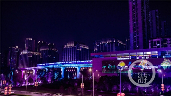 “按照寸滩国际新城的最新定位,我们打造了轨道穿林、城市天幕等网红景点,希望借此聚集人气,助力金山片区打造国际时尚消费体验区。”两江新区城市管理局局长段灿东介绍,为了烘托节日气氛,让就地过年、留渝过年的市民过个热闹、祥和的新春佳节,两江新区在此次城市品质提升中,特意增添了许多大红灯笼、彩灯等传统节日元素,同时在灯光秀中融入了许多新春元素,比如美心广场的墙面投影,就有许多“新年快乐”等画面。