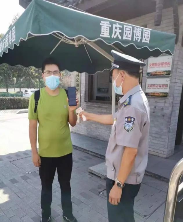 园区各大入口门岗安保人员严格按照防疫要求和入园流程对工作人员和游客进行查验。据悉,园区实行限流,游客需提前在网上实名预约购票,入园时需佩戴口罩、出示健康码为绿码、测量体温小于37.3℃、登记信息、保持间隔1米距离,待工作人员查验无异后方可入园。