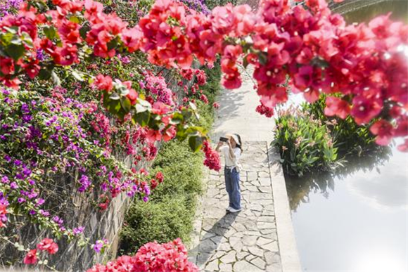 姹紫嫣红的三角梅争相盛开。记者 廖国颖 孙珍 摄