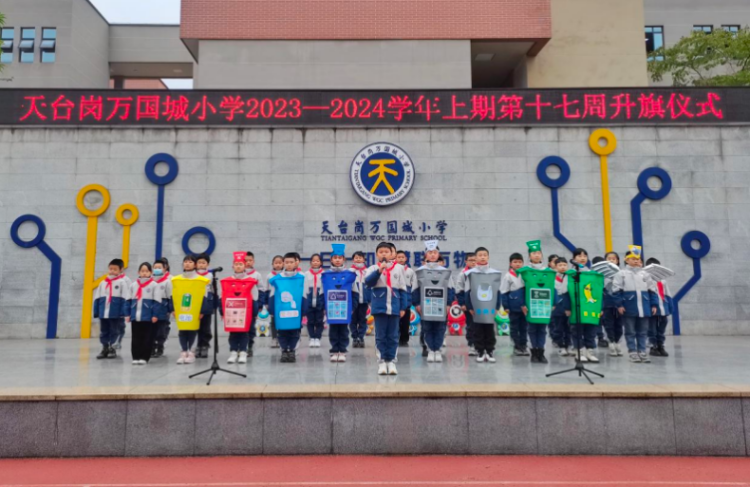 天台岗万国城小学主要从高度重视、厘清认识,明确方向、突破堵点,多方教育、强化行动,督评跟进、巩固成效四个方面持续推进垃圾分类工作,有条不紊地将垃圾分类工作走深走实。值得一提的是,在宣传教育上,学校积极响应南岸区垃圾分类先锋创建活动工作安排,通过电子班牌、班级文化主题呈现垃圾分类海报,在学校微信公众号上推送《致家长一封信》垃圾分类专题。在实践行动上,学生们在“创意市集”活动中将垃圾变废为宝,在“创意时装秀”活动中改造与创造“环保时装”,在“天台宝贝榜样人物”活动中自主设计“垃圾分类游戏大转盘”和环保材料制作的皮影。学校还组织班级创编垃圾分类课本剧《今天,你分了吗?》,在校内校外受到广大师生和群众的欢迎。