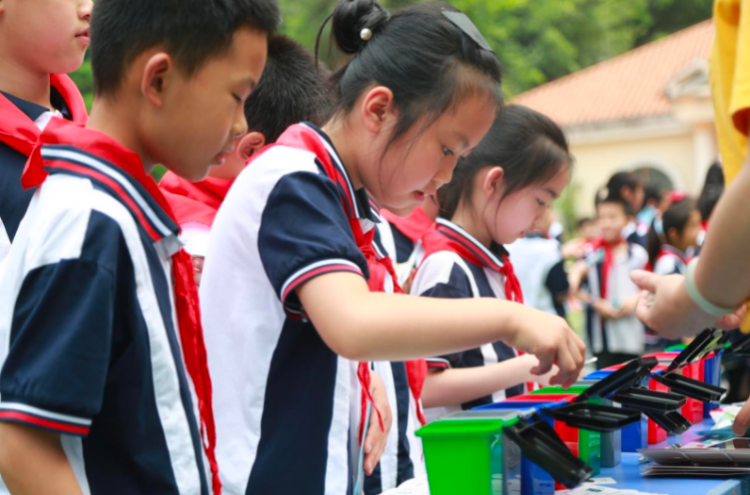 南坪实验金科小学的老师带领学生们积极学习垃圾分类相关知识,将其有机融入课堂、融入生活。如利用班会课时间进行垃圾分类知识竞赛活动,以垃圾分类为主题设计班级卫生角,在英语课堂上开展垃圾分类项目学习,制作垃圾分类知识小报,开展“红领巾广播站宣讲团”垃圾分类知识宣讲活动,参与在垃圾分类站给社区居民介绍垃圾分类知识的社会实践活动等。“保护地球环境与每个人息息相关,做好垃圾减量与分类,是每个人应尽的义务。”这是学校一贯倡导的环保理念,旨在用热情去贯彻垃圾分类的理念,用行动去肩负垃圾分类的重任。