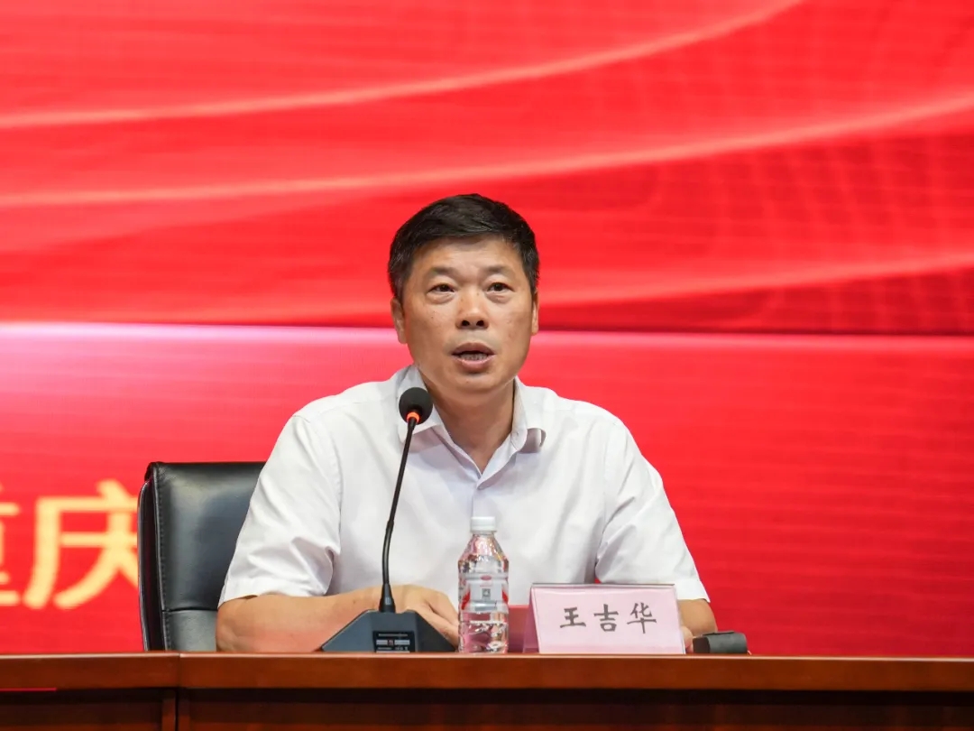 图为:2025年全市技工院校教师节座谈会“校长如是思”环节吉华书记作交流发言