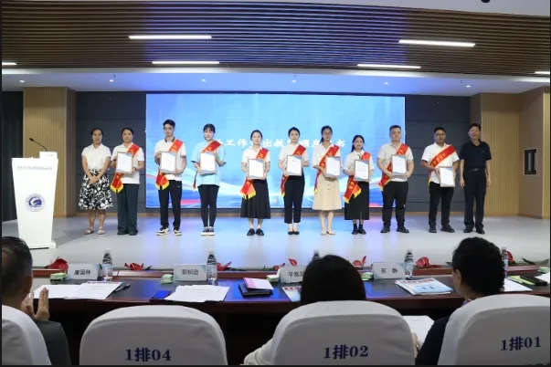 图为:2025年全市技工院校教师节座谈会上我校优秀教师代表获得荣誉表彰(图中)