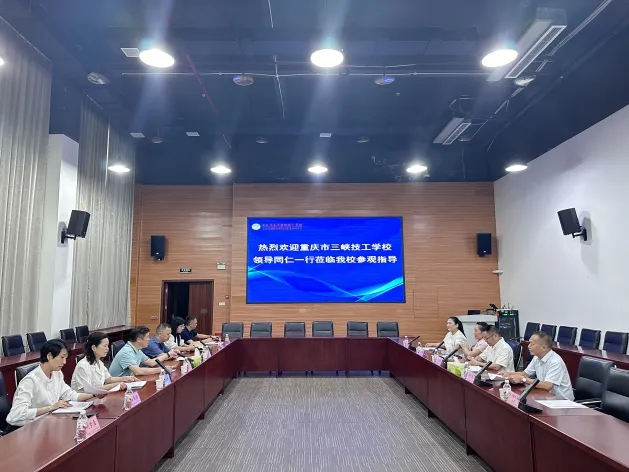 图为:重庆市丰都县三峡技工学校赴我校参观座谈