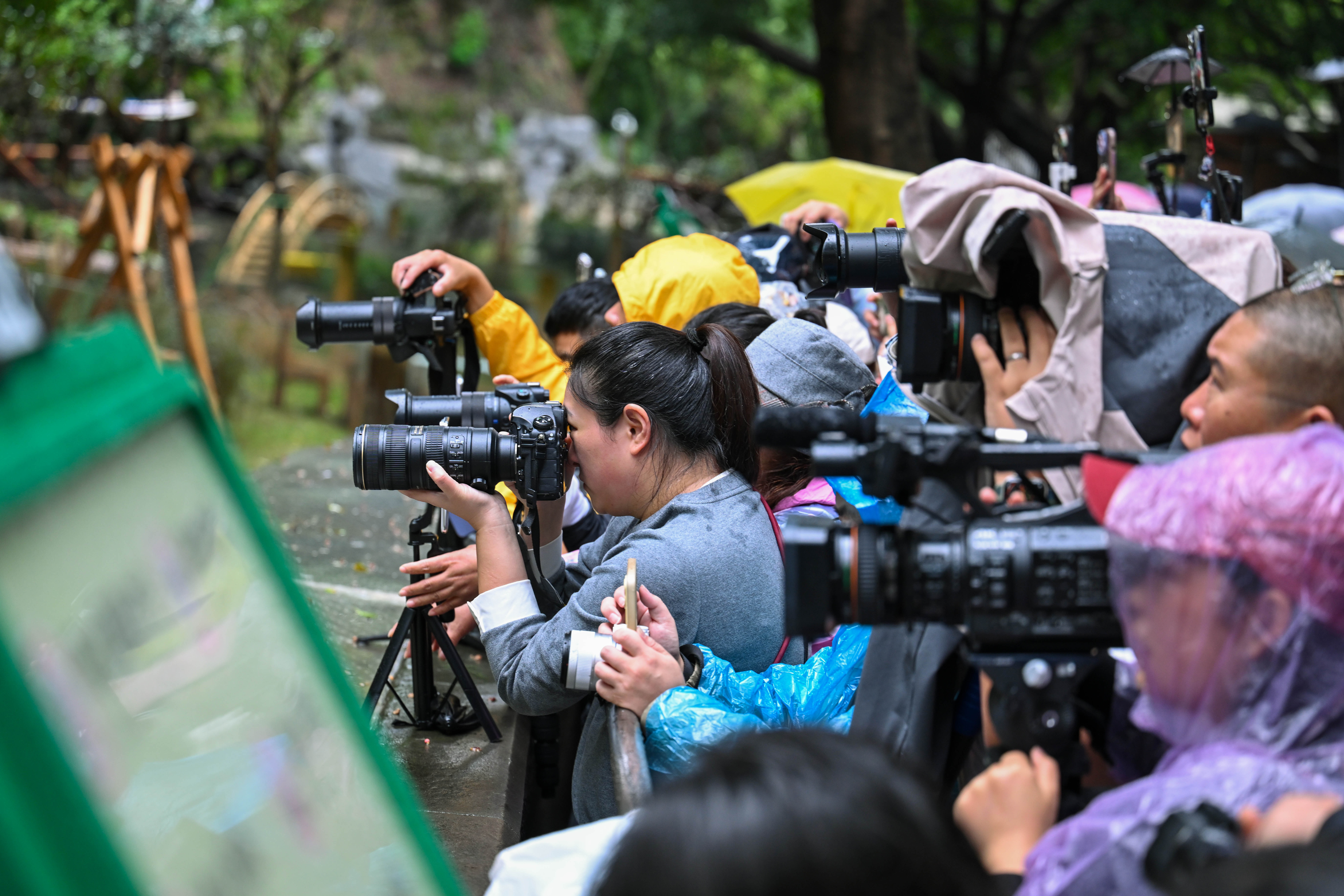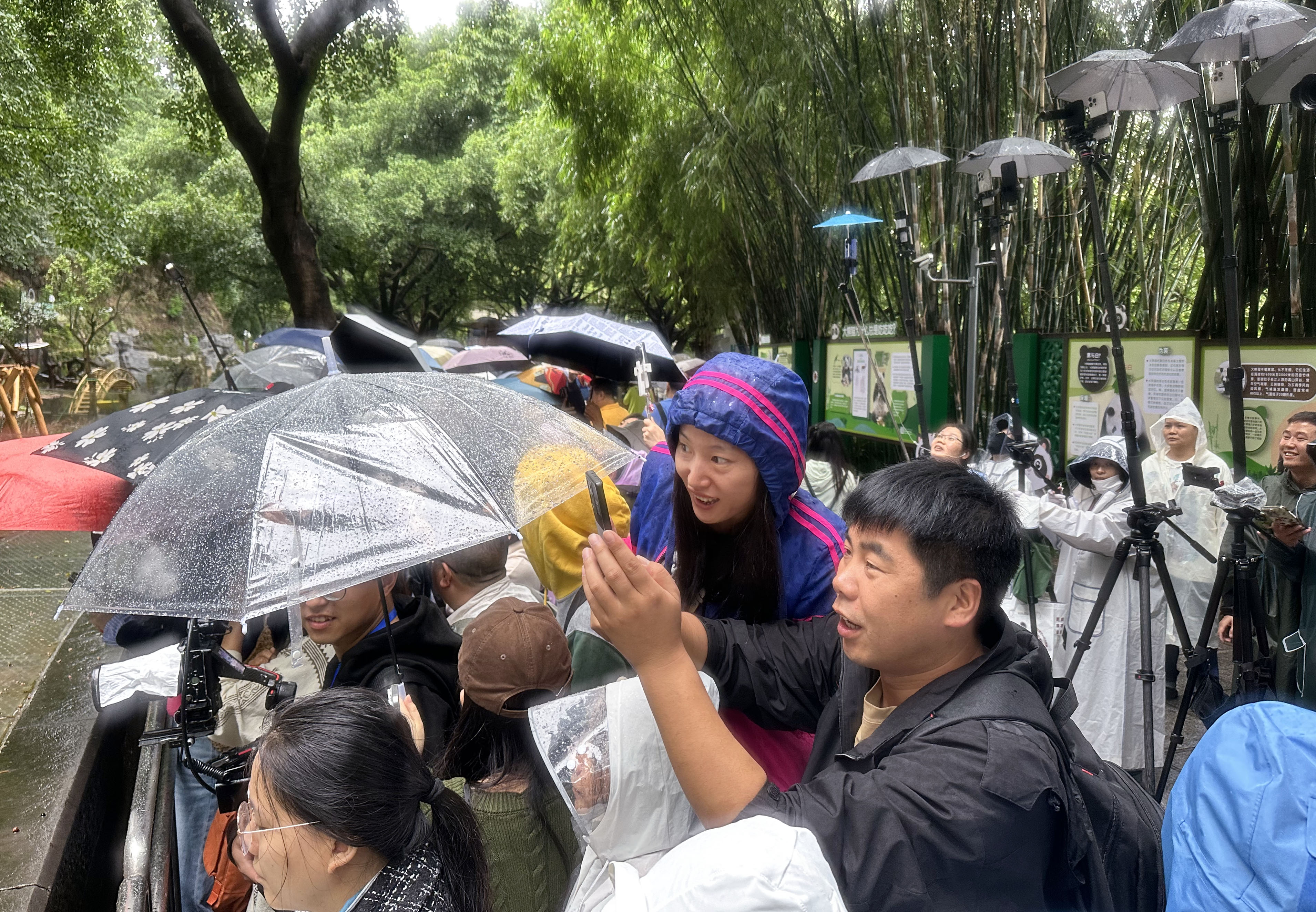 ▲10月20日,重庆动物园,众多“猫粉”冒雨前来参加大熊猫“良月”的幼仔百天见面会。记者 张锦辉 摄