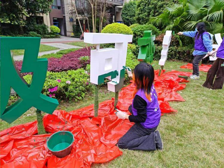 一抹“志愿红”点亮社区“生态绿”,是本次活动的暖心开篇。由社区工作者、志愿者及高校学生组成的“红心志愿队”率先开展行动,针对社区内褪色的垃圾分类立体标识牌进行全面翻新。志愿者们手持颜料与画笔,用鲜亮的绿色重新勾勒“垃圾”“可回收”等标识字样,让环保标识重焕生机,既美化了社区人居景观,也为本次宣传活动营造出醒目且浓厚的绿色氛围。同时,志愿团队精心设计制作了图文并茂的宣传手册、趣味知识转盘等道具,兼顾知识性与趣味性,精准贴合不同年龄层居民的认知需求。