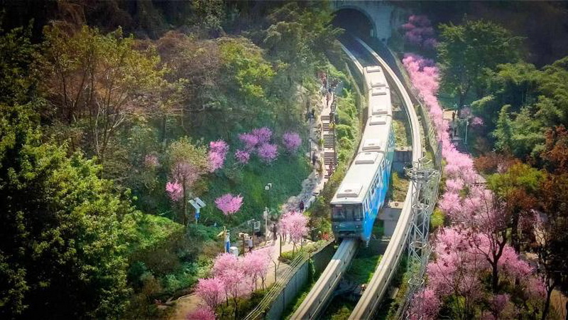这两天,视频《开往春天的列车》火爆全网。视频里,重庆标志性的单轨列车通体彩色涂装,一路穿越缤纷花海,如童话般美不胜收。