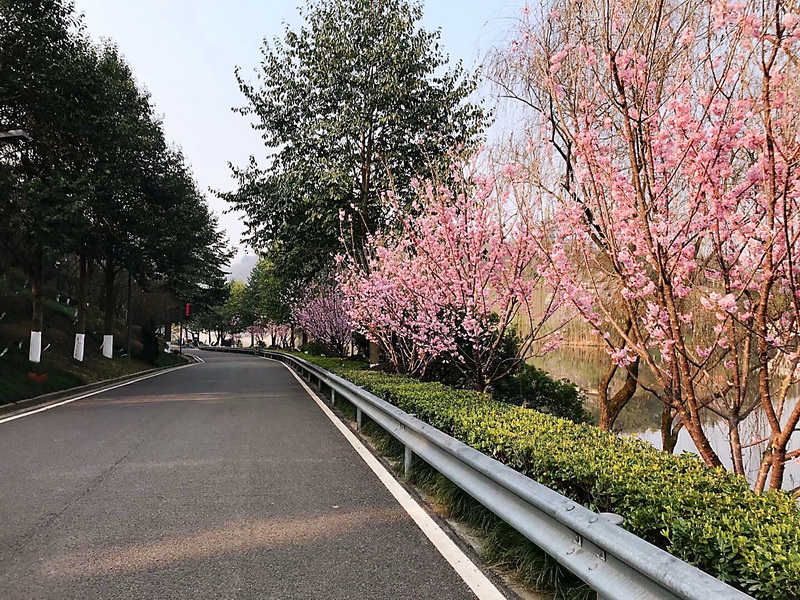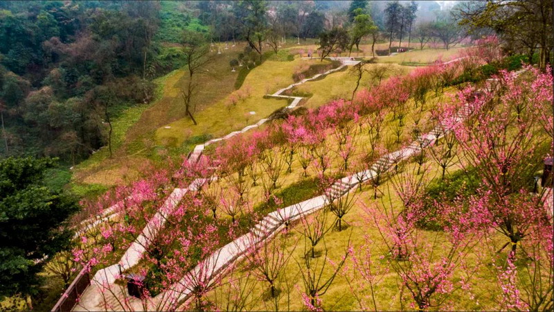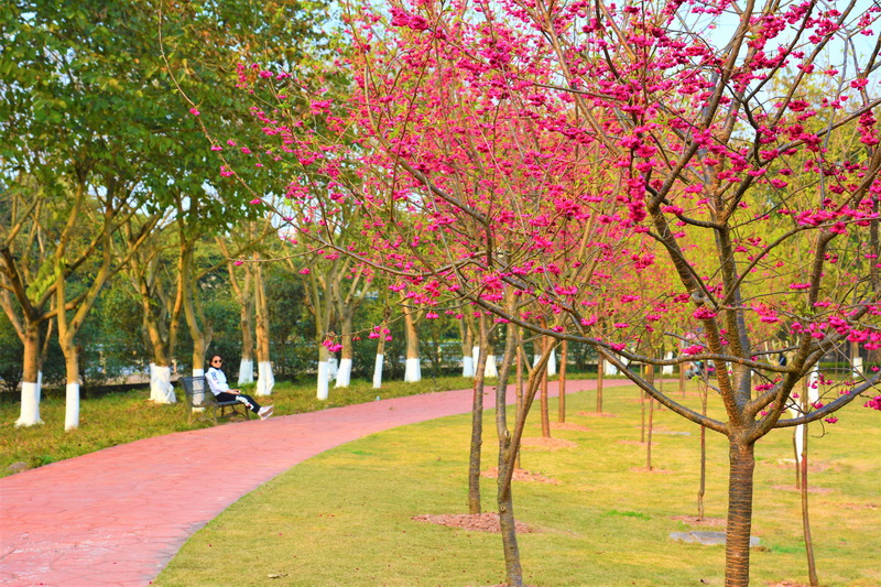 重庆园博园龙景书院沿线的椿寒樱已进入盛花期。同时,3月底-4月中旬,位于荟萃园内1.5公里长的樱花大道上,1000余株日本晚樱花也将展露容颜。