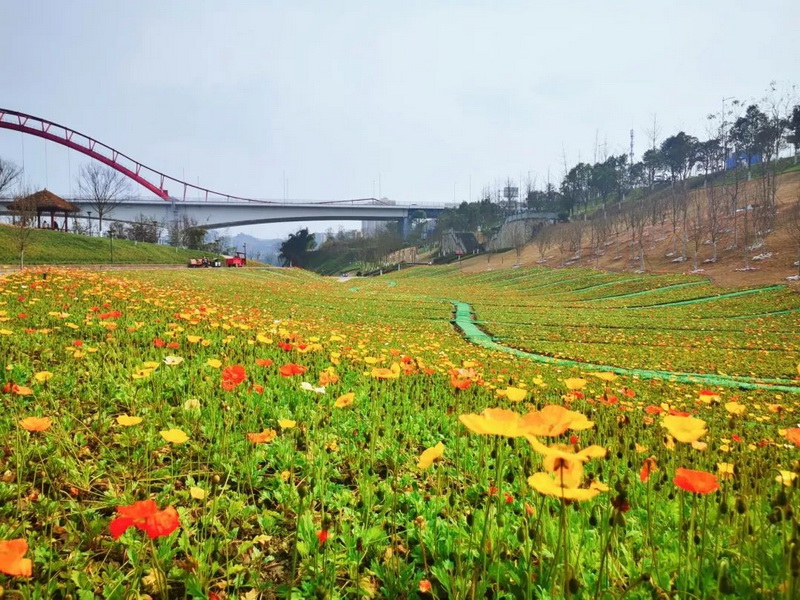 近日,合川区赵家渡水生态公园内虞美人竞相开放,红梅争奇斗艳,二乔玉兰悄然绽放,吸引了不少市民前来游玩拍照。