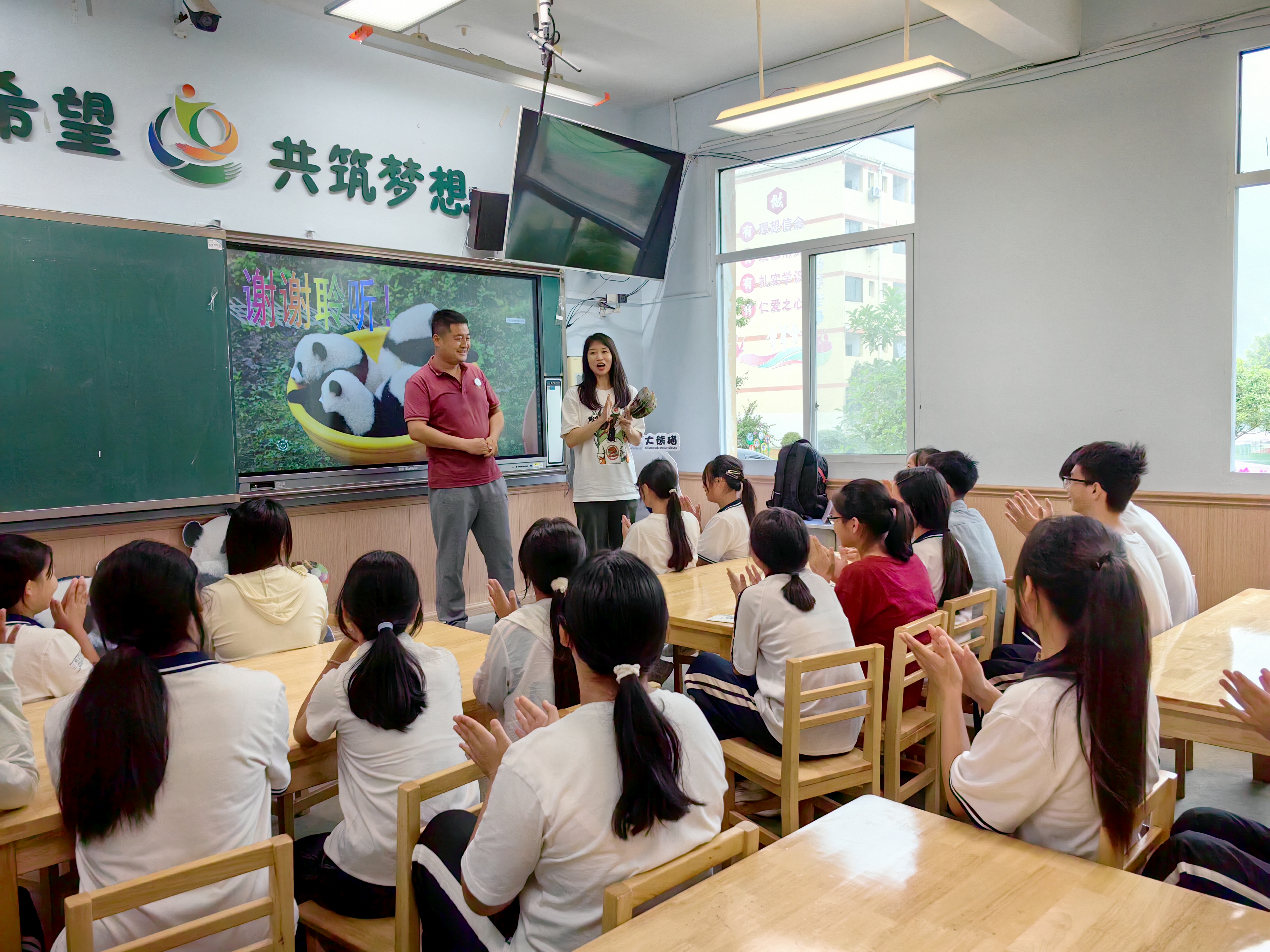 市动物园管理处博士为两校学生带来生动的“大熊猫课堂”,通过趣味讲解与有奖问答,引导学生对大熊猫保护知识的兴趣;操场区域同步开展蛇、蜥蜴等动物及鸟喙、鸟蛋等标本展示,科普人员围绕动物保护主题现场授课,结合有奖问答调动学生参与积极性。