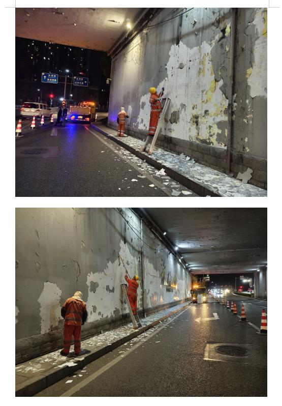 设施焕新工作开展期间,市设施中心共安排现场管理人员85人次,施工人员15人次,作业车辆58台次。目前, 已完成回兴立主线桥桥梁设施的基底处理,正在开展缺陷修补,下一步将进行涂装作业。