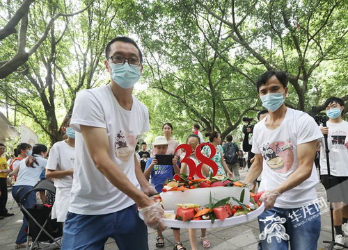 华龙网-新重庆客户端8月16日讯 今(16)日上午,重庆动物园内,众多熊猫迷齐聚一堂,现场制作生日蛋糕、高唱生日快乐歌、献上真挚的生日祝福,为大熊猫“新星”庆祝38岁生日。