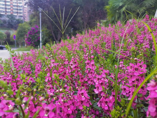 在鸣玉溪公园,红色的、紫色的、白色的三角梅簇拥怒放,一串串不甘寂寞,争奇斗艳;在滨江公园,蔷薇花一树树、一枝枝,层层叠叠,压弯枝头,蜜蜂在花瓣中钻进钻出,把芳香和味道收入囊中;在忠州公园,美人蕉一袭红衣抿嘴欲笑,像火炉煅烧的铁器,似红莲映水耀眼夺目;在北滨体育公园,香彩雀星星点点、挨挨挤挤,宛如撒下一地碎金,五彩斑斓,色彩缤纷;在滨江边坡绿化带,粉红的叶子花凝望江水,如夕阳染红天际,勾勒出“半江瑟瑟半江红”的独特景观……行走在城市,仿佛进入了花的世界,不知道是城在花中,还是花在城中。