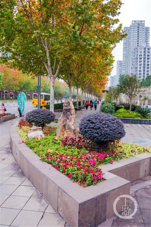 据黄东柏介绍,巴南区采取花境打造的方式,对巴滨路南岸交界处、华熙周边中分带等重要点位进行靓点打造,并对龙洲大道、渝南大道等道路中分带护栏增设了栽有海棠、矮牵头的挂篮,全年共计栽种桂花、蓝花楹等大乔木2867株,美人梅、照手桃、紫薇等开花小乔木15932株,栽植红继木、红叶石楠等色叶灌木及地被8万平方米,摆放及更换时令草花100万余盆,增设景观石75余吨、景观桩头6株、挂篮1730余个。