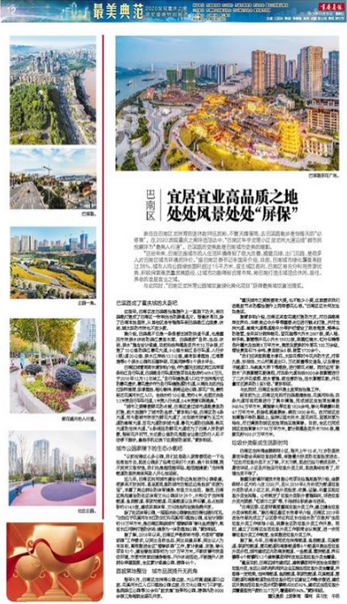 “这些年来,巴南这座城市的人生活环境得到了很大改善,推窗见绿,出门见园,是很多人对巴南区城市环境的评价。”据巴南区委书记辛国荣介绍,目前,巴南城市绿化覆盖率超过38%,城市人均公园绿地面积超过15平方米,居主城区前列,巴南区将充分利用资源优势,积极探索高质量发展路径,让城市功能得到合理布局,将巴南打造主城适合休闲、居住、养老的宜居宜业之城。