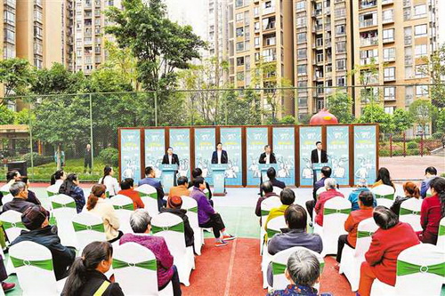 这是本周内第三场“发言人来了——我们的社区生活”发布活动,此前发言人还去了九龙坡区二郎街道迎宾路社区钢球小区、渝北区龙山街道银桦路社区融乐园,就居民关心的垃圾分类、异地医保报销、电梯安全等问题与市民面对面交流。