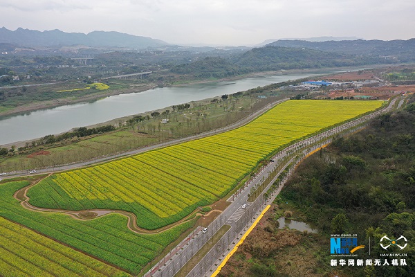 新华网3月3日讯 “蜂吟蝶起花间舞,笑沐春风看花醉。”春天在哪里?春天就在种着油菜花的田园里。仿佛一夜春风,就吹开了千重金浪、万顷花黄。3月初,长江上游最大的江心岛——广阳岛上,300余亩油菜花田满目金黄、竞相绽放,宣告巴渝大地最美的春天已经来了。