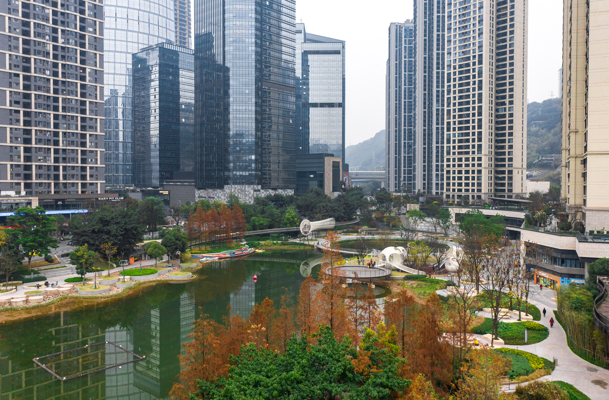 央广网重庆12月17日消息 12月16日,重庆市渝中区化龙湖区域风景如画,蓝天、碧水、黄花、红叶交相辉映,高楼林立间,化龙湖宛若遗世独立的生态绝美画卷迎面舒展开,市民、游客往来其中,如游画中,美不胜收。