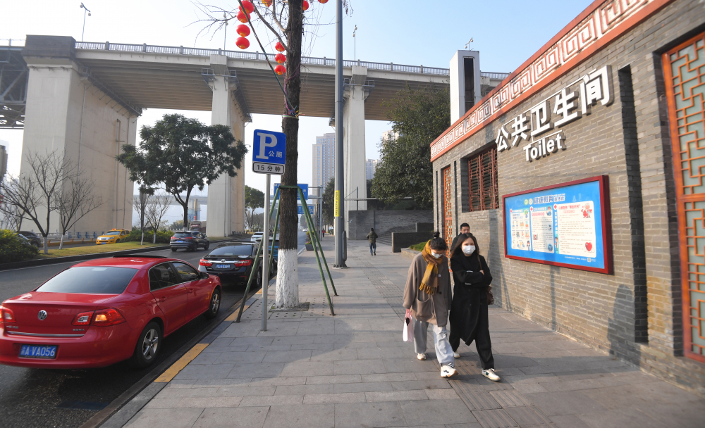 2022年1月18日,江北区北滨路,市民在限时停车位停车后入厕。