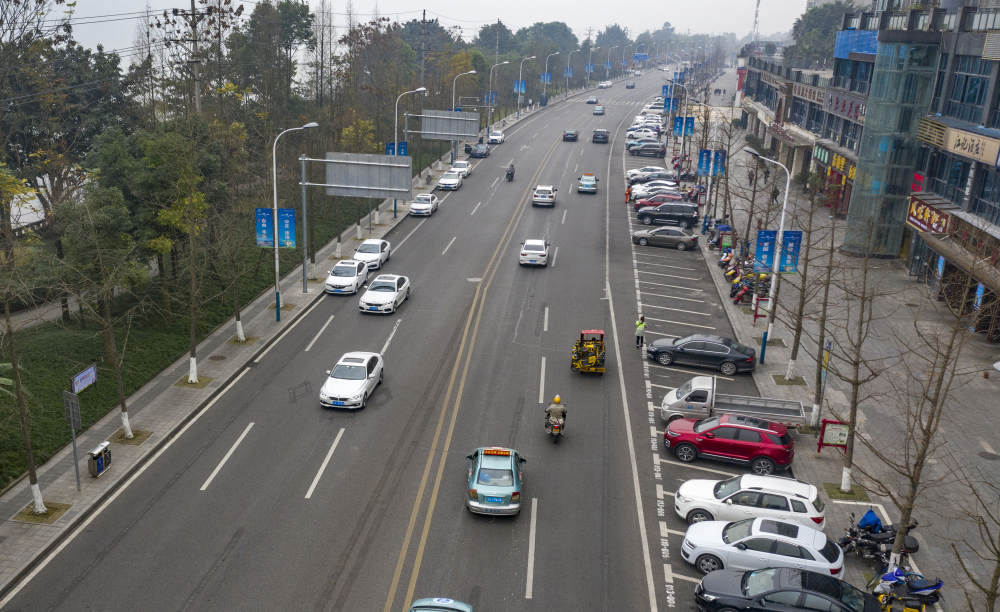 2022年1月18日,江津区滨江路,规划的停车位整齐有序,通过“马路办公”,江津区进一步推广限时停车位设置,缓解停车难问题。
