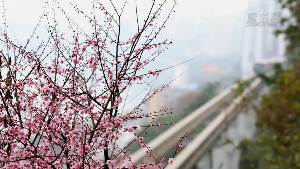 立春之后,随着气温不断回升,轨道二号线李子坝站附近红梅花陆续开放,乘坐轻轨穿梭其间宛若坐上开往春天的列车,引来不少寻找春天足迹的人。
