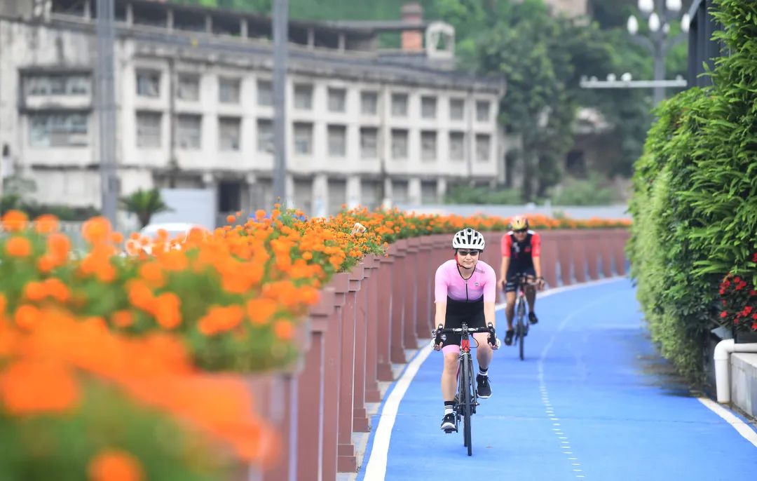 市民在北滨路漫行步道骑车锻炼 江北区委宣传部供图