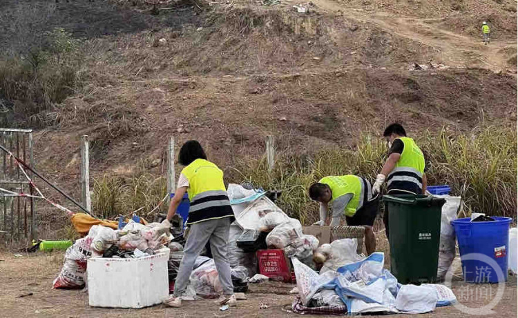 8月26日,缙云山山火扑灭后,山上的垃圾清运工作随即展开。重庆环卫集团第一时间组织人员赶赴现场开展生活垃圾分类清理行动。
