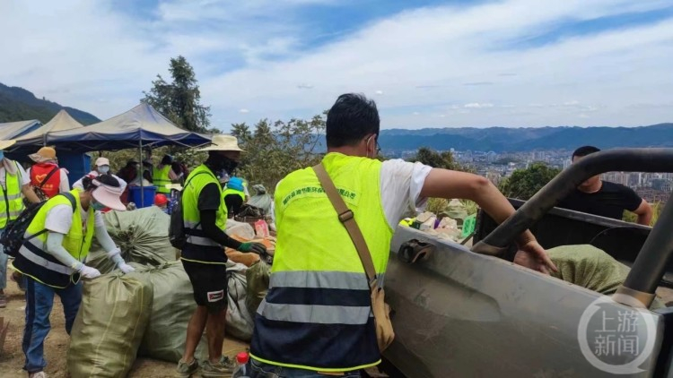 坡陡上不去,那就手脚并用,攀爬而上;沟深够不着,那就蹲着小步,蹒跚而行……夜幕降临,他们仍打着手电筒四处查看,不留下每一个垃圾,不放过每一处死角。