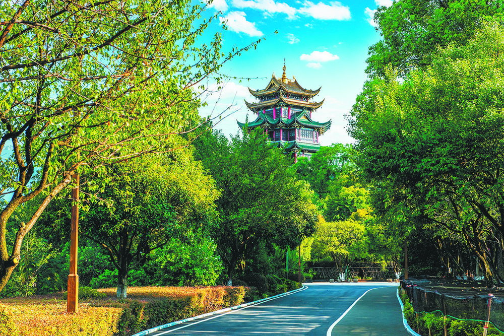 今年元宵节,江北区鸿恩寺公园元宵灯会上的千灯长廊,让人流连忘返。这条长廊所在地,正是“最美山城绿道”获奖项目——鸿顶路。鸿顶路是鸿恩寺公园最主要的路段,一边连接桂花榜,一边连通鸿顶云霞直至鸿恩阁。游客走在宽敞的道路上,两边都是精致的景观,四季有景的风光让人忍不住“越走越慢”,尽情欣赏绿道之美。
