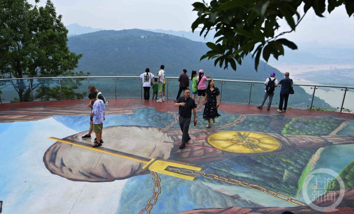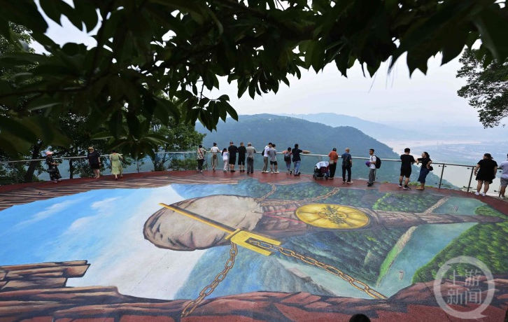 7月9日,上游新闻记者从江北区公园管理中心获悉,铁山坪森林公园的巨型3D彩绘已于近日在铜锣朝天一号观景台亮相。