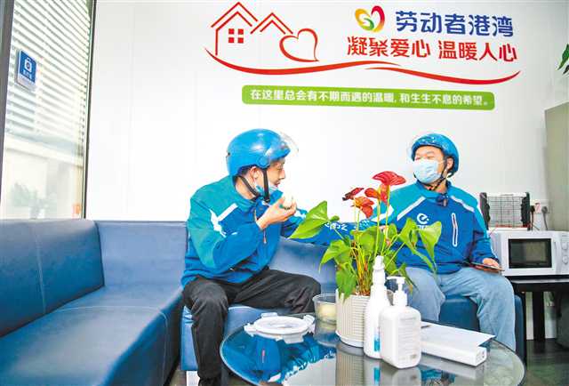 另一方面,在充分听取户外劳动者意见建议的基础上,部分“劳动者港湾”除了配备冰箱、烧水壶、暖水瓶、桌椅、储物柜等基本设施,还增配常用医药箱、无线Wi-Fi、书报角、影音设备、淋浴间等设施。