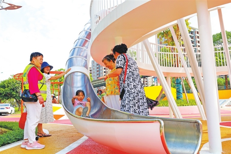 居民带着孩子在公园游玩