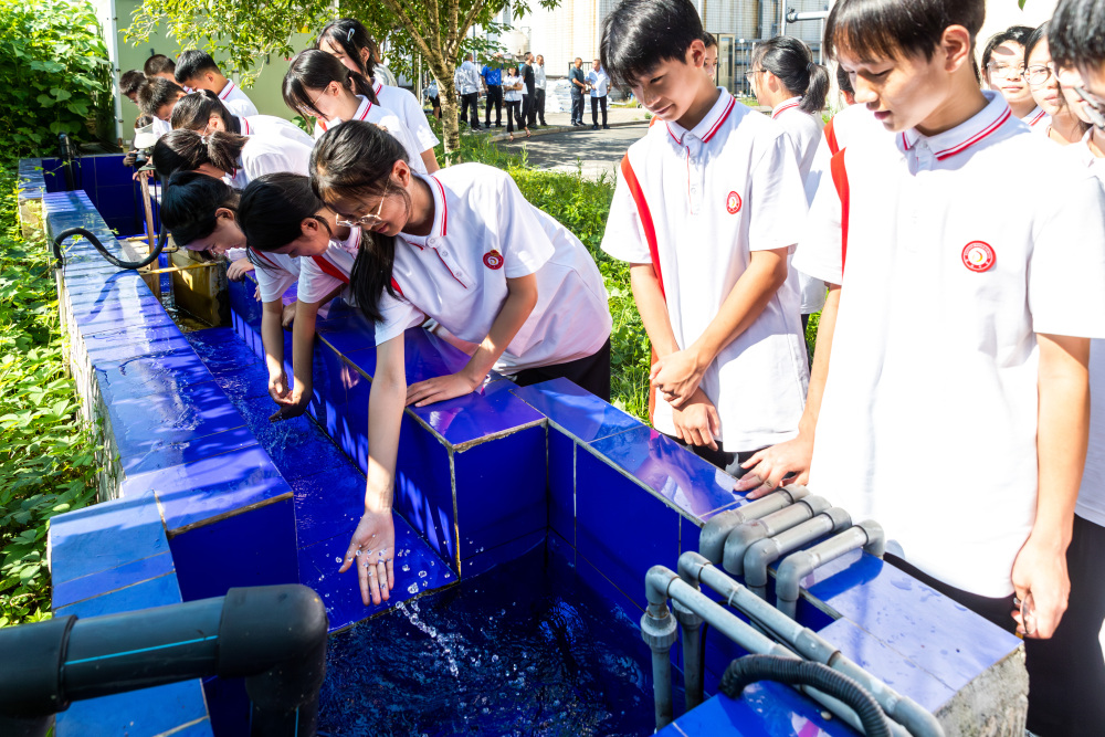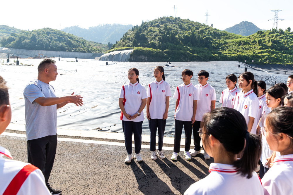 9月1日,南川区城市生活垃圾处置场,道南中学学生在观看处置后排出的垃圾废水。
