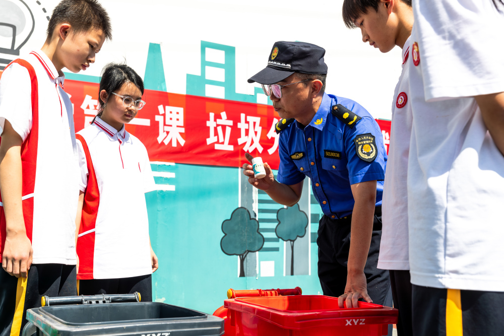 开学第一天,南川区城市管理局、区教委联合开展“开学第一课·垃圾分类学知行 绿色环保入人心”主题活动,来自道南中学的中学生代表通过实地查看、现场调研、参与游戏互动等形式了解城市生活垃圾处置情况,提高垃圾分类意识,从小养成生活垃圾分类习惯。