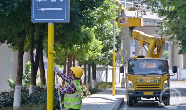 近日,走在重庆市江北区的街头,经常能看见身穿橙色工作服的工人正在为街边的一盏盏路灯换上“新衣服”。