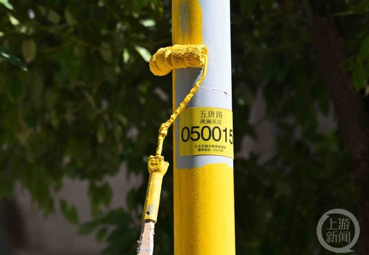 上游新闻记者从江北区城市照明管理所了解到,7月中旬以来,江北区对辖区4800余盏道路照明灯杆、33座箱式变电站进行刷漆翻新,以保证其外观光亮、无泥垢,延长灯杆使用寿命,提升城市靓丽形象。