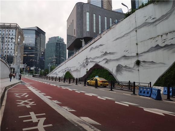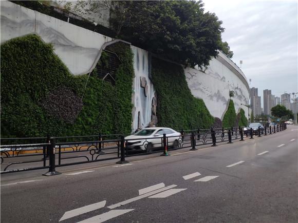 据江北区城市管理局相关负责人介绍,该幅“千里嘉陵图”下穿道立体绿化面积约为2670平方米,它利用立体绿化、3D壁画、古建筑仿建、夜景景观等手法完美呈现出一个虚实相生的坡坎崖美景。