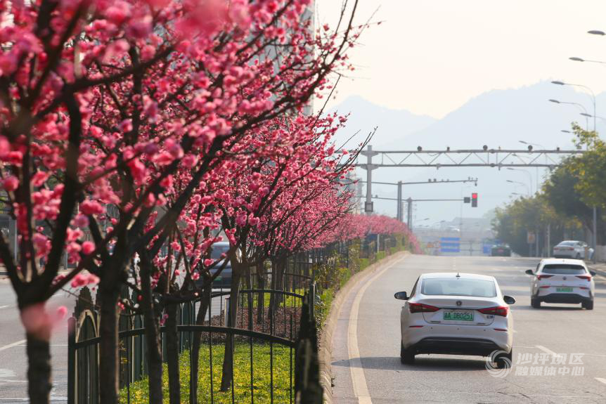 春暖花开好时节、踏青出游正当时。经前期下足“绣花功夫”精细管护后,近日,在沙坪坝区多个公园和主干道上,红梅、美人梅竞相绽放,如诗如画,春意浓郁。无论是漫步在公园的小径上,还是驾车穿梭于主干道,一朵朵梅花落满枝头、娇艳欲滴,都宛如“人在画中游”。
