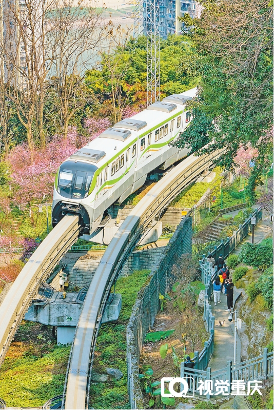 2月18日,渝中区佛图关公园半山崖线步道,市民纷纷来此打卡“开往春天的列车”,享受春日暖阳和梅花芬芳。见习记者 李雨恒 摄/视觉重庆