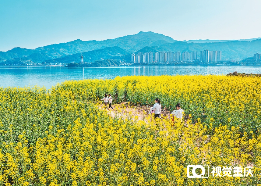 2月17日,开州区汉丰湖国家湿地公园,油菜花竞相绽放,吸引不少市民前来踏春。通讯员 王晓宇 摄/视觉重庆