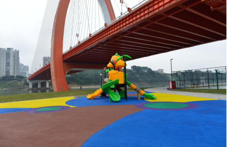与此同时,涪江大桥桥下空间还配套滑滑梯、跷跷板、传声筒、秋千等儿童健身游乐设施,以及童趣景观小品、桌椅、公厕等休闲游乐服务设施,让3岁到12岁的孩子都能找到钟爱的项目。
